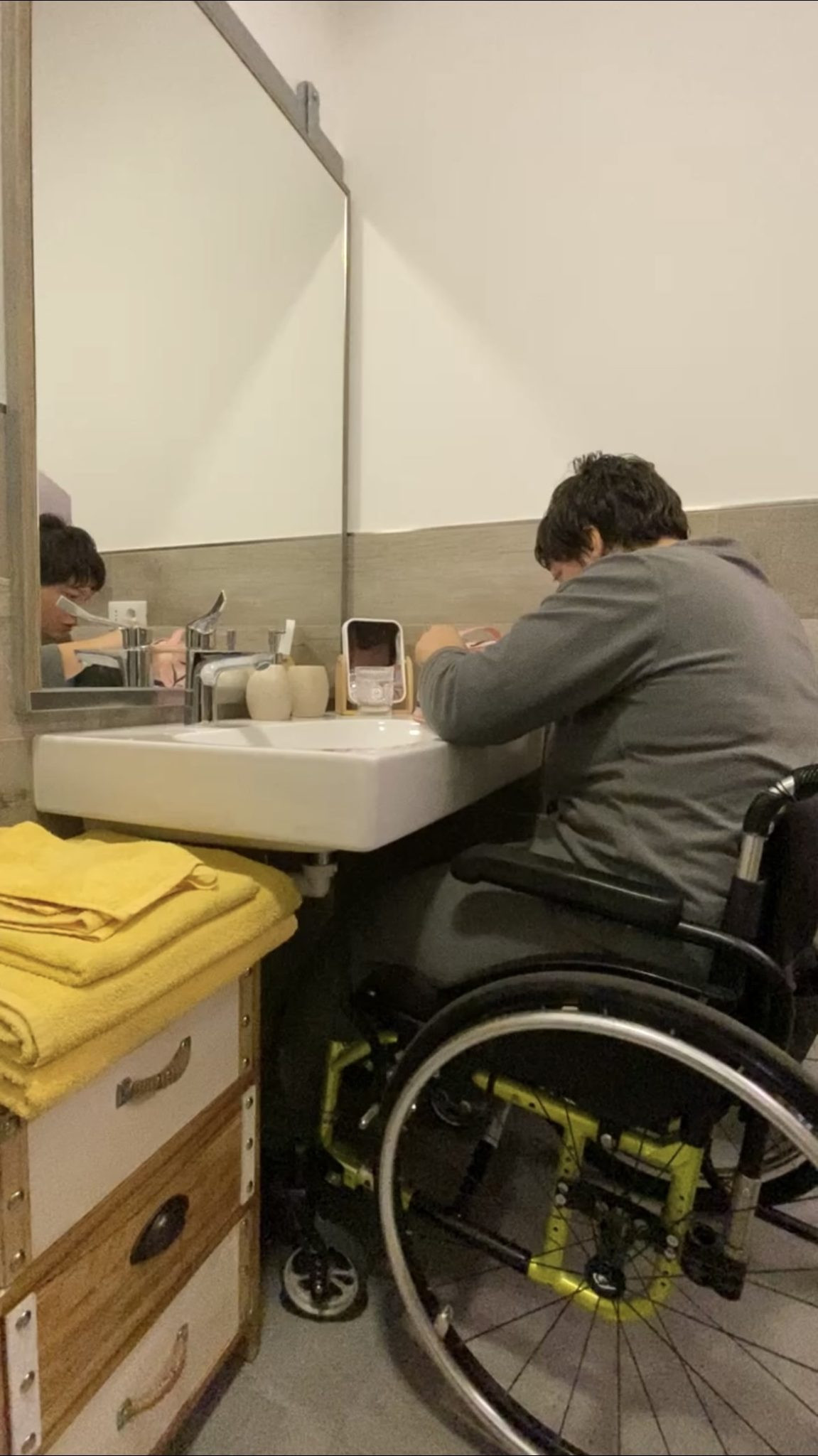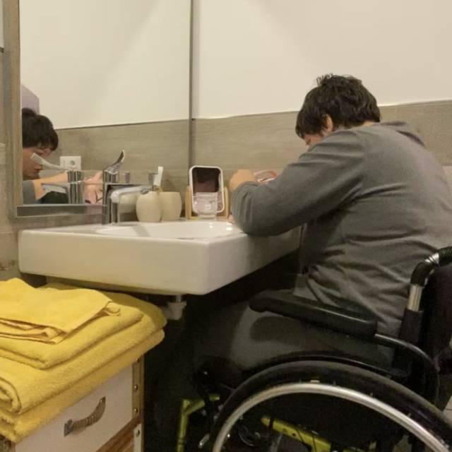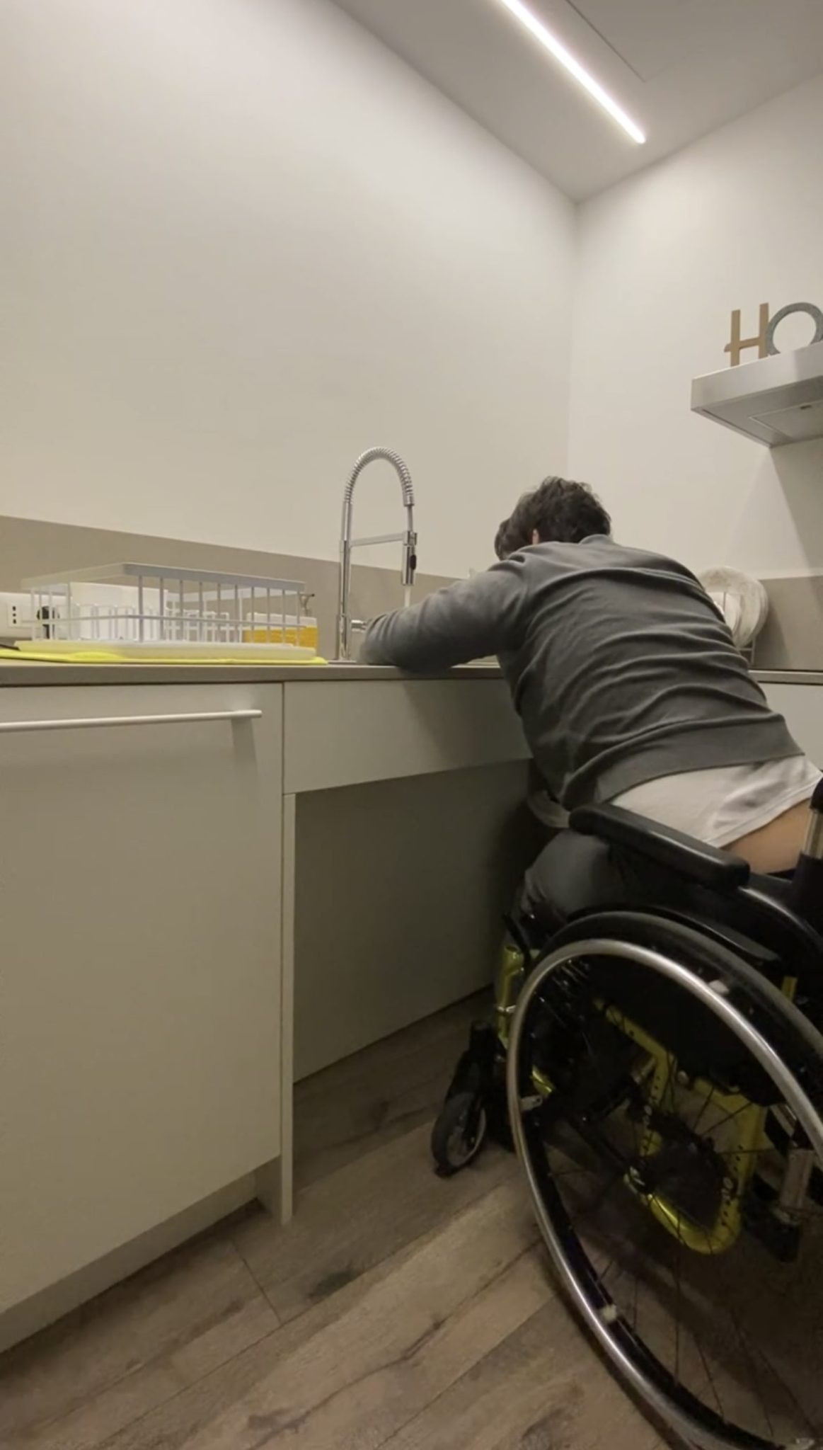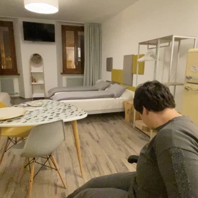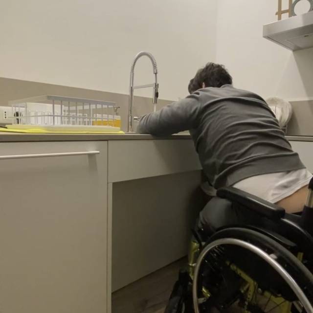 Questo appartamento adotta tutte le misure appositamente per le persone in sedia: il materasso è ad altezza 55 centimetri, la cucina è totalmente fruibile e bassa. Sotto il lavabo non c'è nessun mobile quindi è aperta e permette alle persone in sedia a ruote di usufruirne e di favorire la loro autonomia.