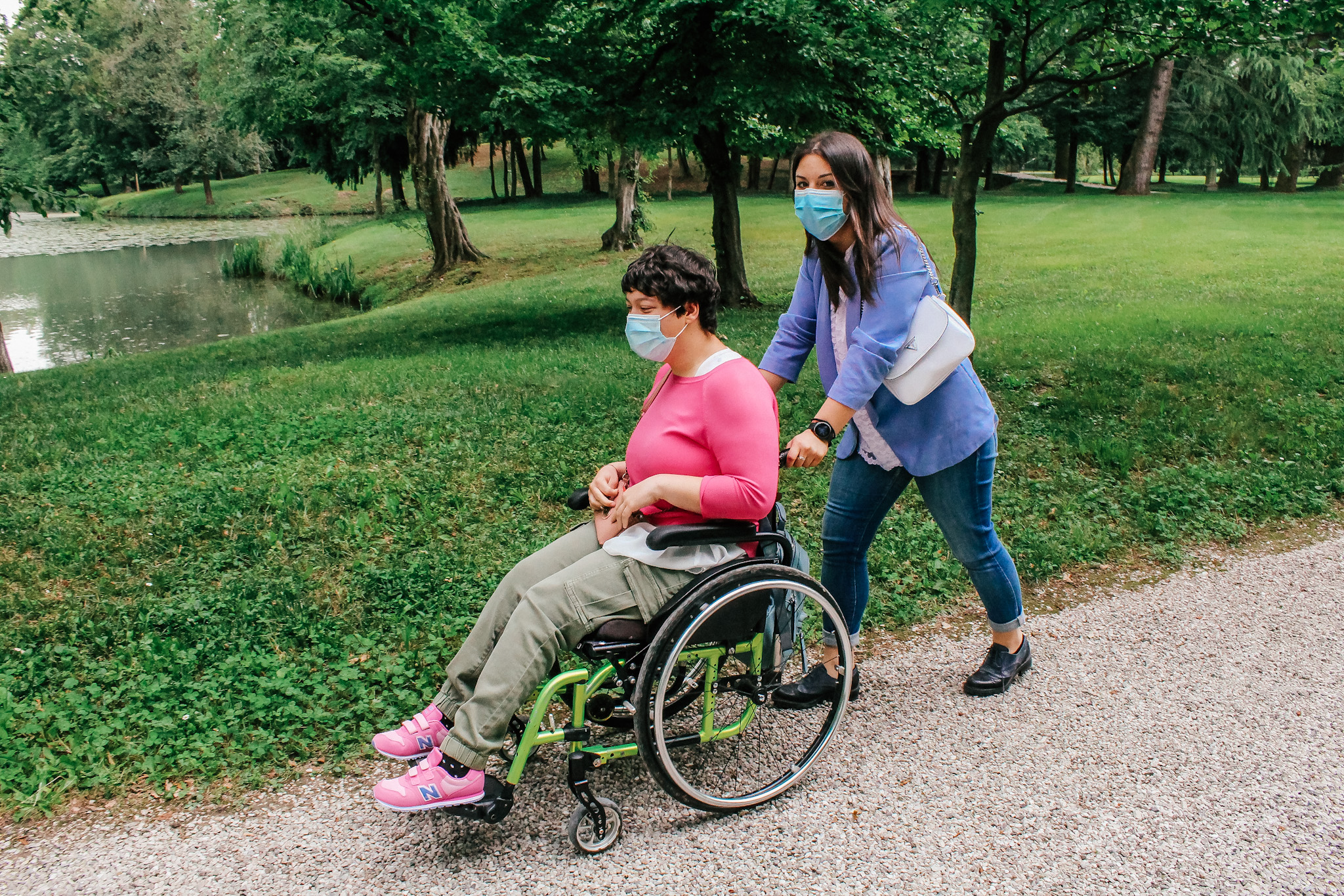 La passeggiata nella stradina sterrata del Parco Bolasco mi è stata possibile grazie all’aiuto di mia sorella, c’era uno strato di ghiaia medio e da sola non sarei riuscita ad affrontarlo. Inoltre, in alcuni punti lo strato si faceva più consistente così Sara è salita sull’erba per limitare il problema.