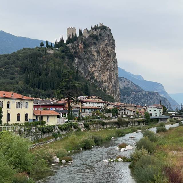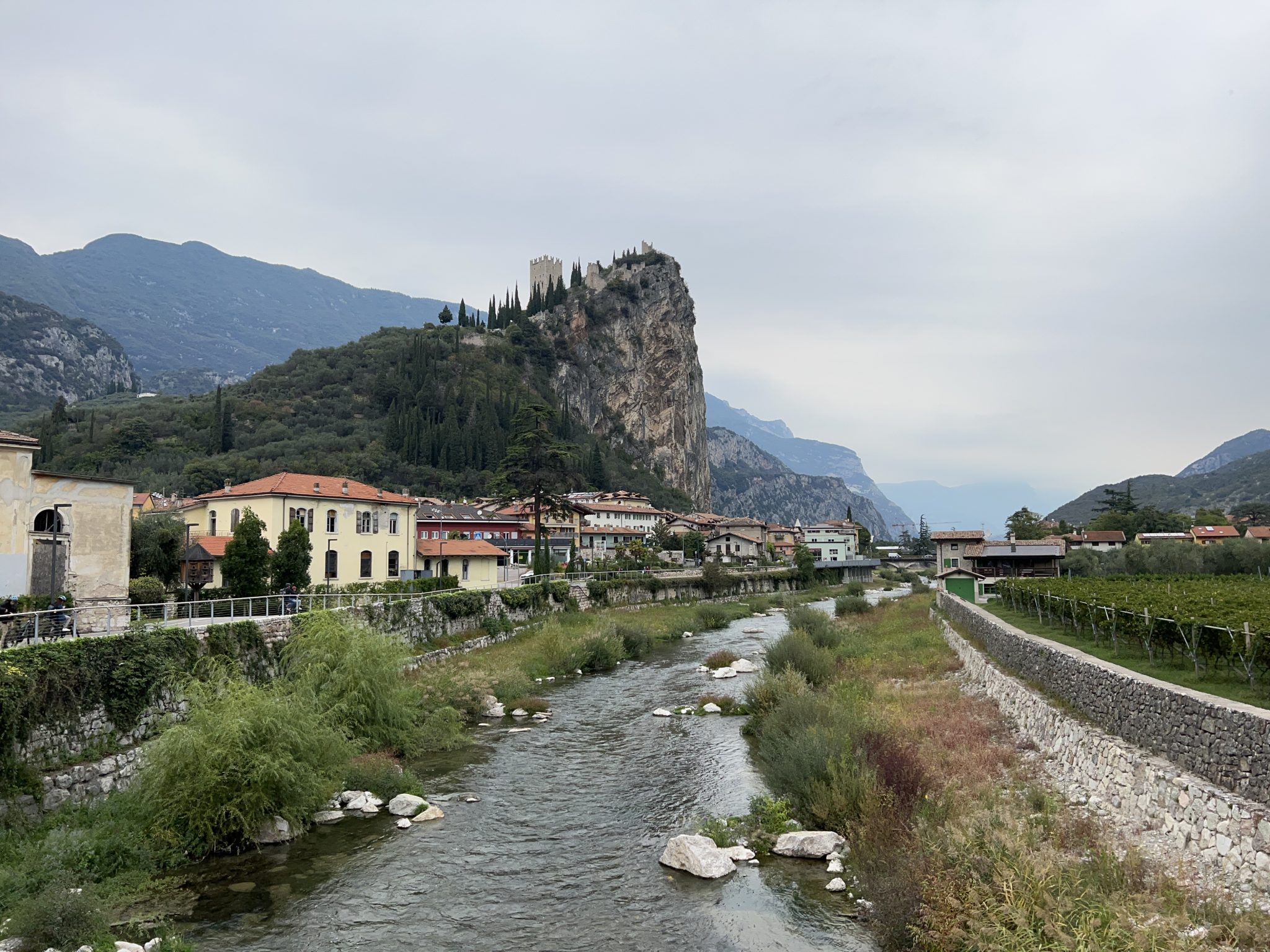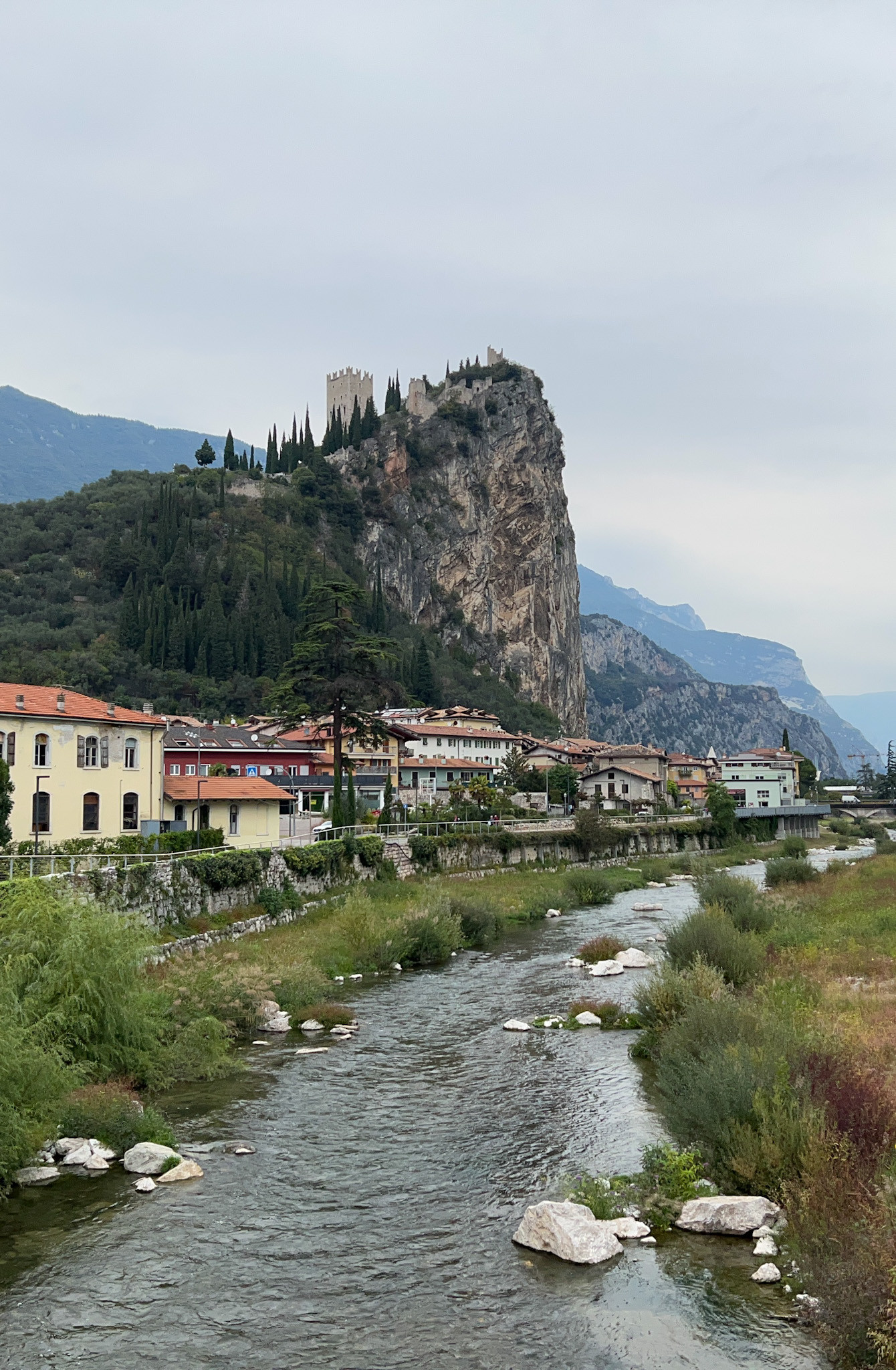 Man mano che pedalavamo, vedevamo stagliarsi difronte a noi, sempre più nitido, uno sperone di roccia da cui domina il famosissimo Castello di Arco.