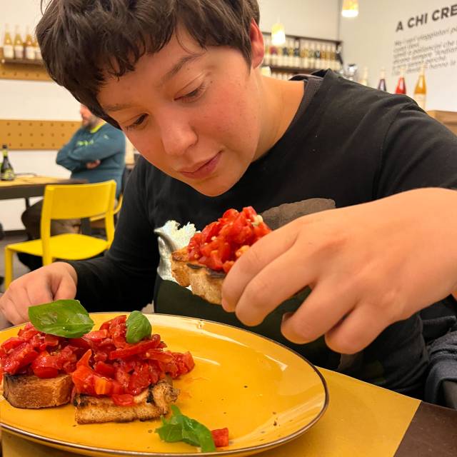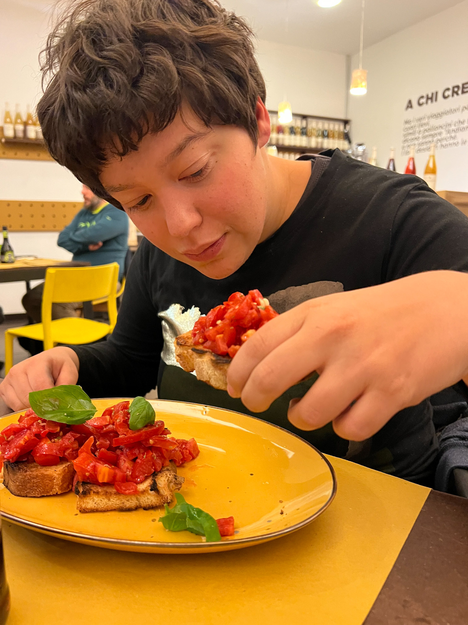 Ale invece ha preferito la bruschetta, gustandola fino all’ultimo pomodorino.