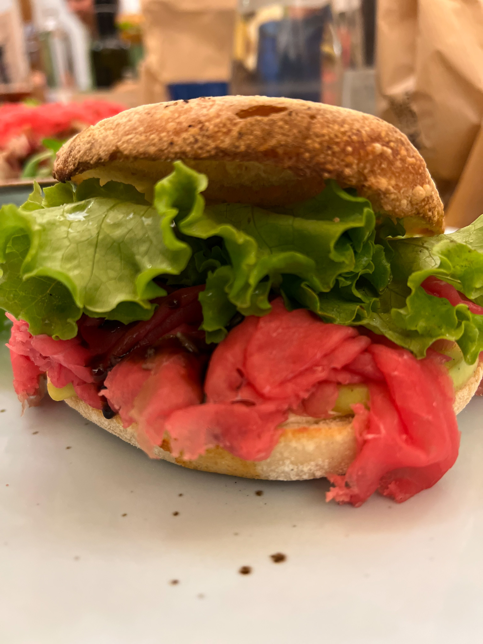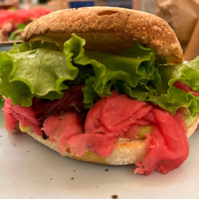 Ovviamente, io Sara, non potevo non testare il panino km0 composto da carne salada, insalata, mele, aceto balsamico e casolet alle noci, un connubio di sapori elegantemente equilibrati.